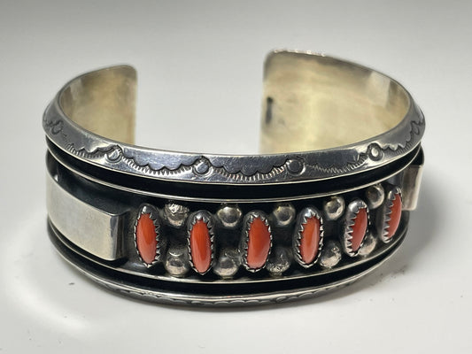 Wholesale Vintage Shadow Navajo Coral Sterling Silver Bracelet .925