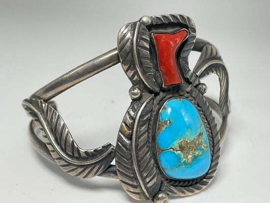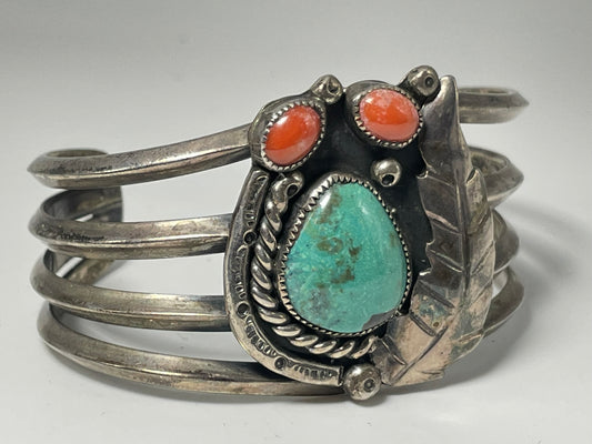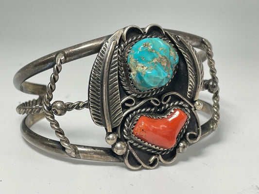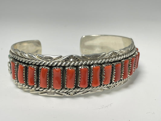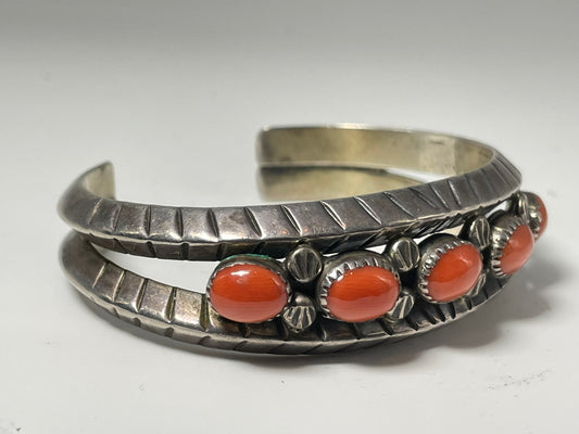 Wholesale Vintage Navajo Coral Sterling Silver Bracelet .925